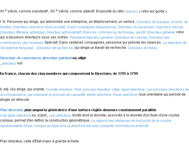 Ancienne définition « directeur » du dictionnaire académique Français, parution de l’année 1798.