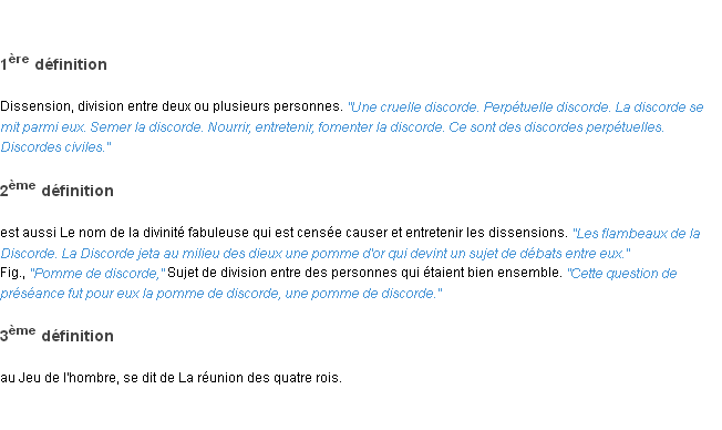 Ancienne définition de « discorde » de source académique (Académie Française, parution de 1798).