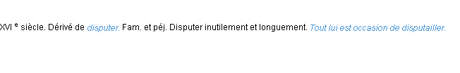 Définition du mot « disputailler » par Emile Littré (édition de 1876).Merci à Joelle et Brice pour la numérisation du mot disputailler.