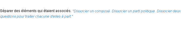 Signification du terme « dissocier », parution de 1876 (dictionnaire le Littré).Merci à Colombain et Arnaud pour la numérisation du mot dissocier.