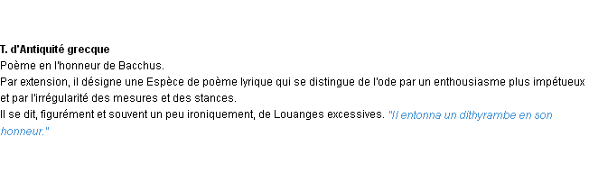 Ancienne signification éditée en 1798 pour le terme « dithyrambe » par l’Académie Française.