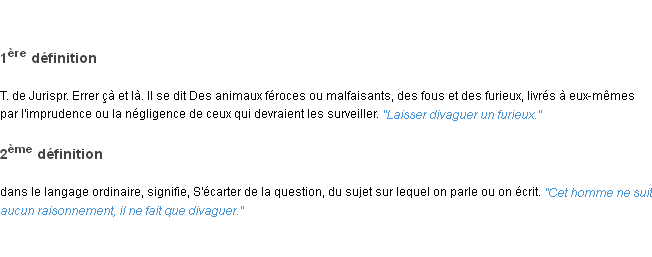 Définition académique pour le terme « divaguer » (parue en 1932).