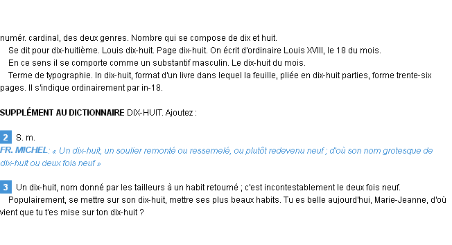 Signification éditée en 1986 pour le terme « dix-huit » par l’Académie Française.