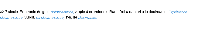 Signification du terme « docimastique », parution de 1876 (dictionnaire le Littré).