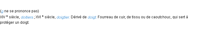Définition de l’Académie Française (édition de 1932) pour le mot « doigtier ».