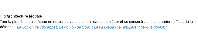 Ancienne définition académique pour le terme « donjon » (parue en 1835).