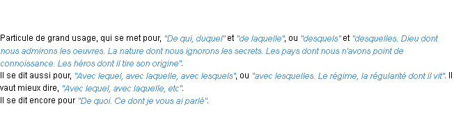 Ancienne signification du terme « dont », parution de 1835, dictionnaire académique Français.