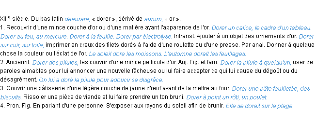 Ancienne définition de « dorer » de source académique (Académie Française, parution de 1835).