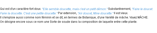 Ancienne définition du mot « doucet » par l’Académie Française (édition de 1835).