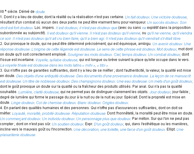 Définition académique pour le terme « douteux » (parue en 1986).