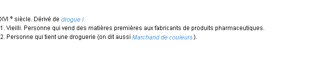 Signification éditée en 1932 pour le terme « droguiste » par l’Académie Française.