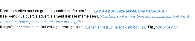 Définition du mot « dru » par l’Académie Française (édition de 1986).