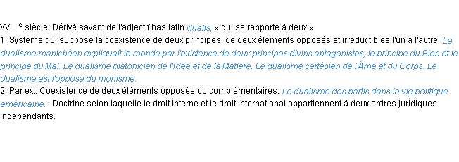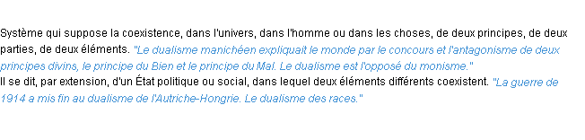 Définition du mot « dualisme » par l’équipe de la-definition.fr (édition de 2011).