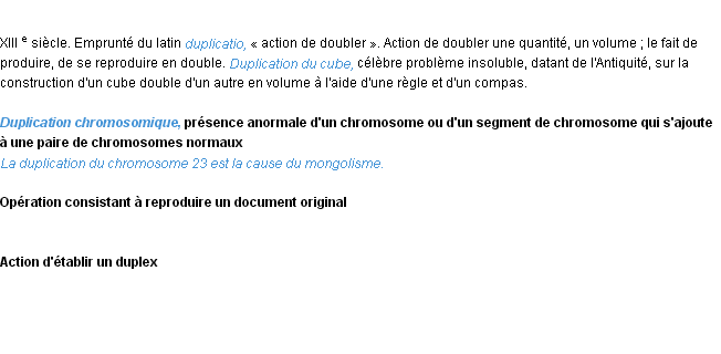 Ancienne définition académique pour le terme « duplication » (parue en 1835).