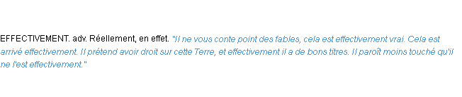 Ancienne définition de l’Académie Française (édition de 1798) pour le mot « effectivement ».Merci à Serge et Corinne pour la numérisation du mot effectivement.