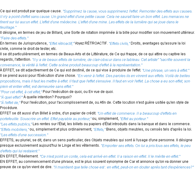 Signification du terme « effet », parution de 1932, dictionnaire académique Français.