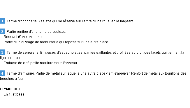 Définition « embase » du dictionnaire académique Français, parution de l’année 1986.