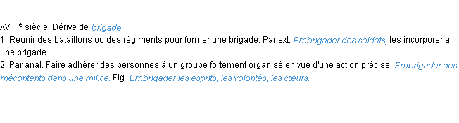 Signification éditée en 1986 pour le terme « embrigader » par l’Académie Française.