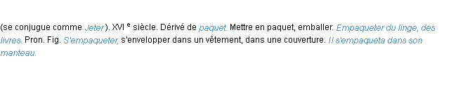 Ancienne signification du terme « empaqueter », parution de 1798, dictionnaire académique Français.Merci à Philippe et Paulette pour la numérisation du mot empaqueter.