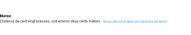 Signification du terme « encablure », parution de 1876 (dictionnaire le Littré).Merci à Philippe et élise pour la numérisation du mot encablure.