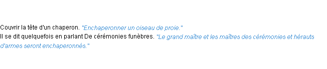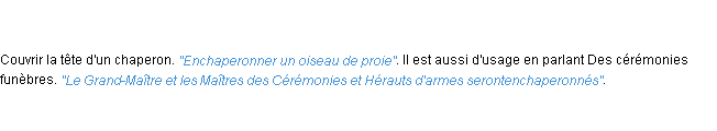 Signification du terme « enchaperonner », parution de 1932, dictionnaire académique Français.