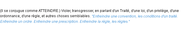 Définition académique pour le terme « enfreindre » (parue en 1986).
