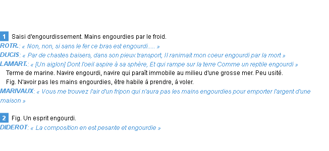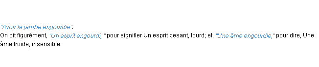 Ancienne signification éditée en 1798 pour le terme « engourdi » par l’Académie Française.