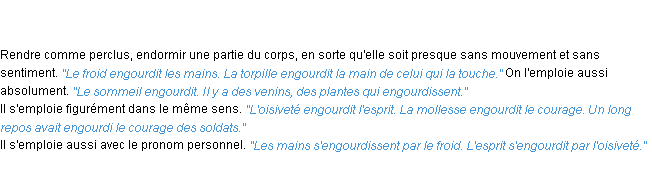 Définition du mot « engourdir » par l’Académie Française (édition de 1932).