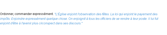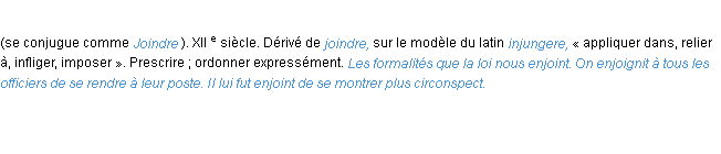 Ancienne définition « enjoindre » du dictionnaire académique Français, parution de l’année 1835.