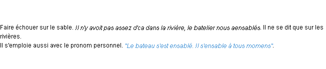 Ancienne définition de « ensabler » de source académique (Académie Française, parution de 1798).Merci à Régis et Gervais pour la numérisation du mot ensabler.