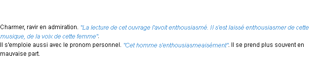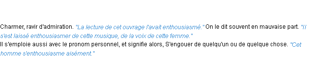 Signification éditée en 1986 pour le terme « enthousiasmer » par l’Académie Française.