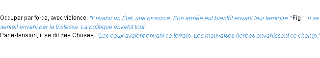 Ancienne définition académique pour le terme « envahir » (parue en 1835).