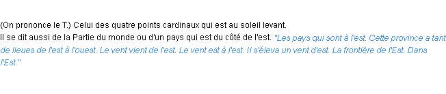 Définition de « est » de source académique (Académie Française, parution de 1986).