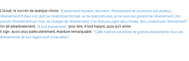 Ancienne signification du terme « evenement », parution de 1694, dictionnaire académique Français.