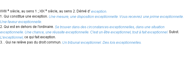 Définition du mot « exceptionnel » par l’Académie Française (édition de 1932).