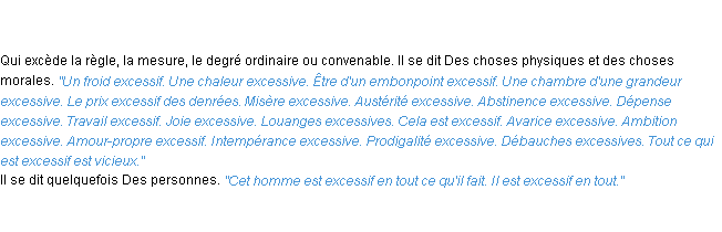 Définition de « excessif » de source académique (Académie Française, parution de 1932).