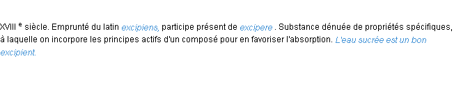 Signification éditée en 1932 pour le terme « excipient » par l’Académie Française.