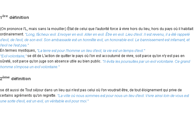 Signification du terme « exil », parution de 1932, dictionnaire académique Français.