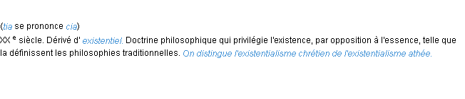 Signification éditée en 2008 pour le terme « existentialisme » par l’équipe de wiktionary France.