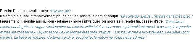 Signification du terme « expirer », parution de 1986, dictionnaire académique Français.