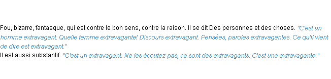 Ancienne définition « extravagant » du dictionnaire académique Français, parution de l’année 1798.Merci à Jeannette et Odile pour la numérisation du mot extravagant.