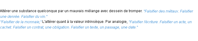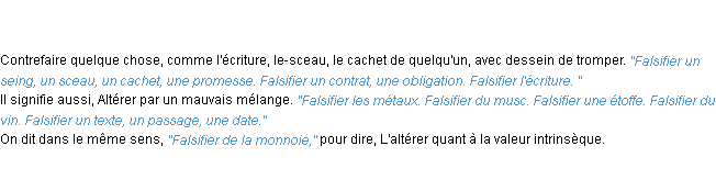 Ancienne définition académique pour le terme « falsifier » (parue en 1835).