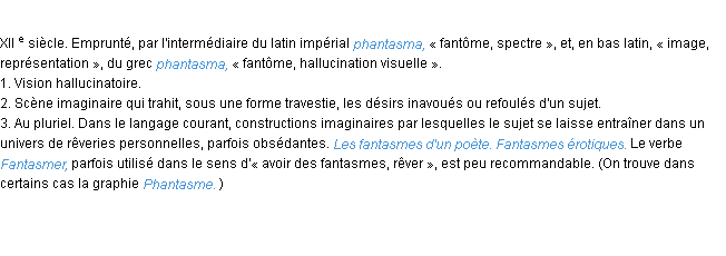 Définition de l’Académie Française (édition de 1986) pour le mot « fantasme ».Merci à Romain et Mélissa pour la numérisation du mot fantasme.