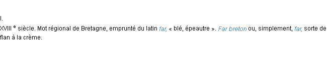 Signification du terme « far », parution de 1986, dictionnaire académique Français.