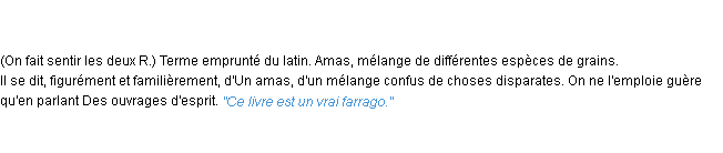 Définition développée dans dictionnaire d’Emile Littré (ancienne édition de 1876).Merci à Matthieu et Aurèle pour la numérisation du mot farrago.