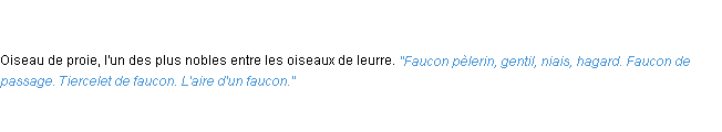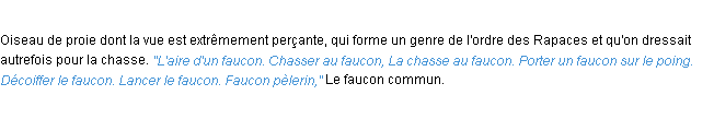 Ancienne signification éditée en 1835 pour le terme « faucon » par l’Académie Française.