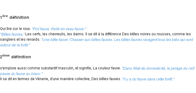 Définition du mot « fauve » par l’Académie Française (édition de 1986).