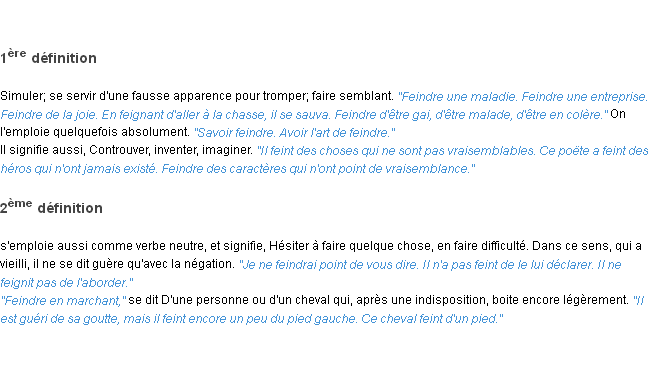 Définition du mot « feindre » par l’Académie Française (édition de 1932).