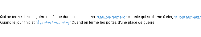 Ancienne signification éditée en 1835 pour le terme « fermant » par l’Académie Française.