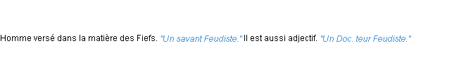 Définition « feudiste » du dictionnaire académique Français, parution de l’année 1986.